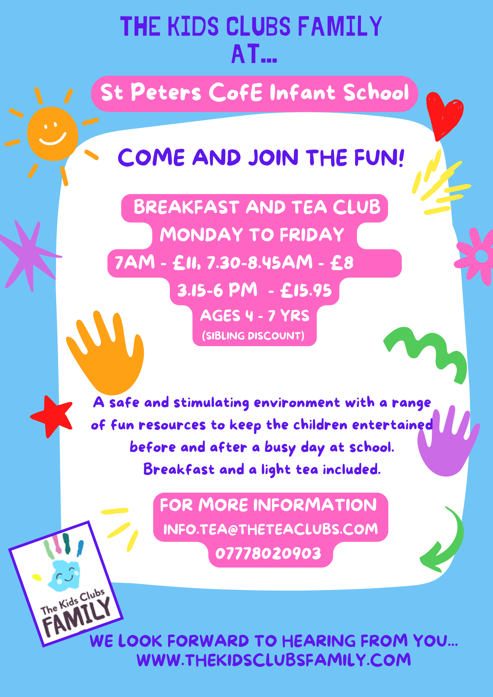 Our new, on-site wrap-around care provision is managed by The Kids Clubs Family. Spaces are limited and on a first come first served basis. Sessions should be booked directly >> thekidsclubfamily.com/st-peters-club